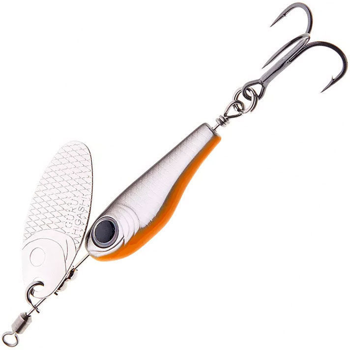 но и имеет и свою собственную игру. Для оптимизации работы блесны на течении - в ось блесны интегрирован вертлюжок с колечком.