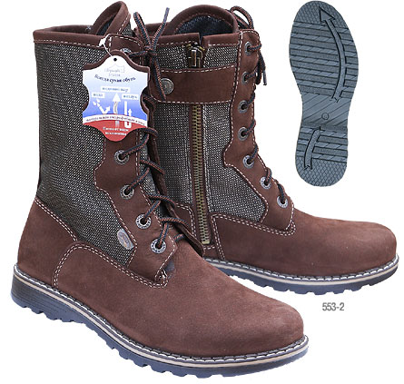 Обувь выполнена из нубука и водоотталкивающей тканиполиуретановое покрытие ткани, обладают мембранным эффектомподкладка поролон - «камбрель». легко поддается аэрозольной обработке для повышения влагостойкостизакрывается на молнию.